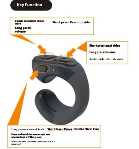 This compact fingertip remote control functions as a selfie shutter button and Bluetooth page turner, compatible with both iOS and Android devices. Effortlessly take hands-free selfies, scroll through e-books, or flip through pages in apps with ease. Its lightweight design makes it perfect for on-the-go use, offering convenience and versatility for capturing photos or reading without touching your screen. Ideal for travelers, readers, and selfie enthusiasts!