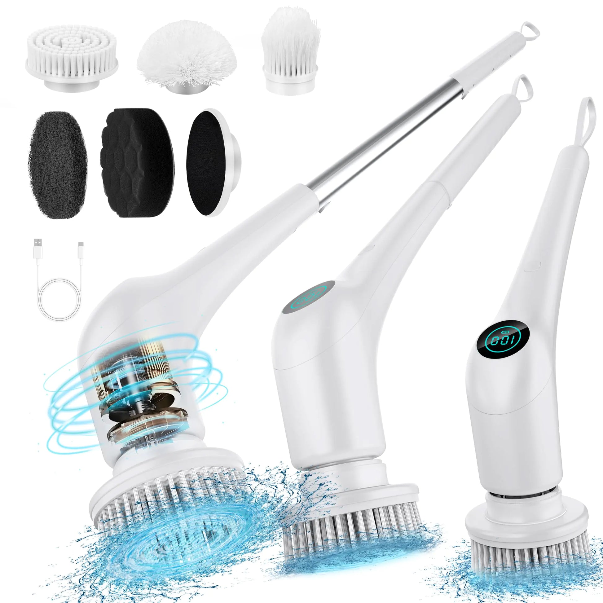 [1.Be Your Home Guard: Clean your entire house with FUNCCUBE Electric Spin Scrubber. No need to bend or kneel while protecting joints and muscles. Spin power scrubber for bathroom save you from the backache and waist pain that comes with cleaning. Our cordless bathtub electric spin scrubber with long extension handle features 4 detachable lengths and 2 adjustable speeds (250/350RPM). Spin away dirt effortlessly getting you and your family to breathe in a fresher air. Fast Charging & Long Working Time: Equipped with a 2000mAh rechargeable Li-Po battery our electric spin scrubbers for shower cleaning brush can be used for about 60 minutes after only 4 hours fast charging. Spin electric floor scrubber with LED displaythe shower spin scrubber for cleaning with visual screen panel allow you to check the power at anytime. Safety First with IPX6 Waterproof: Our cordless shower electric spin scrubber with long handle is partially waterproof at the brush head work in humid environments like bathrooms and kitchens. Put the bathtub spin scrubber into the shallow water without worrying about affecting the bathroom spin floor scrubber and the splash. Remove stains while keeping you dry. More Accessories & Multipurpose: Our cordless electric spin scrubber for cleaning offers 6 versatile replaceable brush heads suitable for different scenarios.Dome brushes are used to clean bathtubs and toilets; Large&small flat brushes are used to clean showers and floors; Point brushes cleaning narrow and hard-to-reach areas sponge brushes are used to clean car window glass; and cleaning pads are used in kitchens.Just press the buttonall the stubborn stains will gone. Lightweight & Easy to Maneuver: Only weighing 1.56 lbs our floor cordless electric cleaning spin scrubber advantage of its lightweight and ergonomic grip to bring your grabbing comfort the bathtub scrubber is highly sought after all ages. Our electric spin scrubber for toilet boasts a simple one-button release design for easy assembly and disassembly. Feel free to adjust the lengths as you need!]